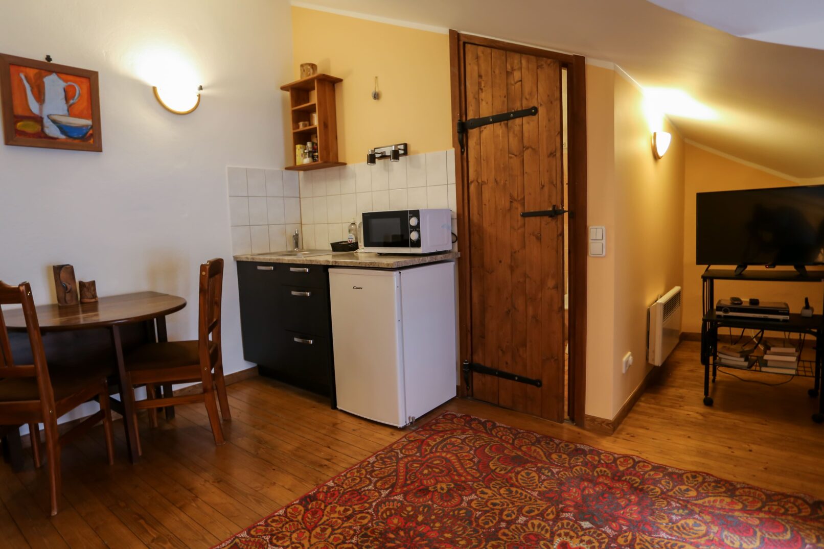 Offering free toiletries, this double room includes a private bathroom with a walk-in shower and a hairdryer. Meals can be prepared in the well-fitted kitchenette, which has a refrigerator, kitchenware, a microwave and a tea and coffee maker. The double room offers a dining area, parquet floors, heating. The unit has 1 double bed. Free Wi-Fi!